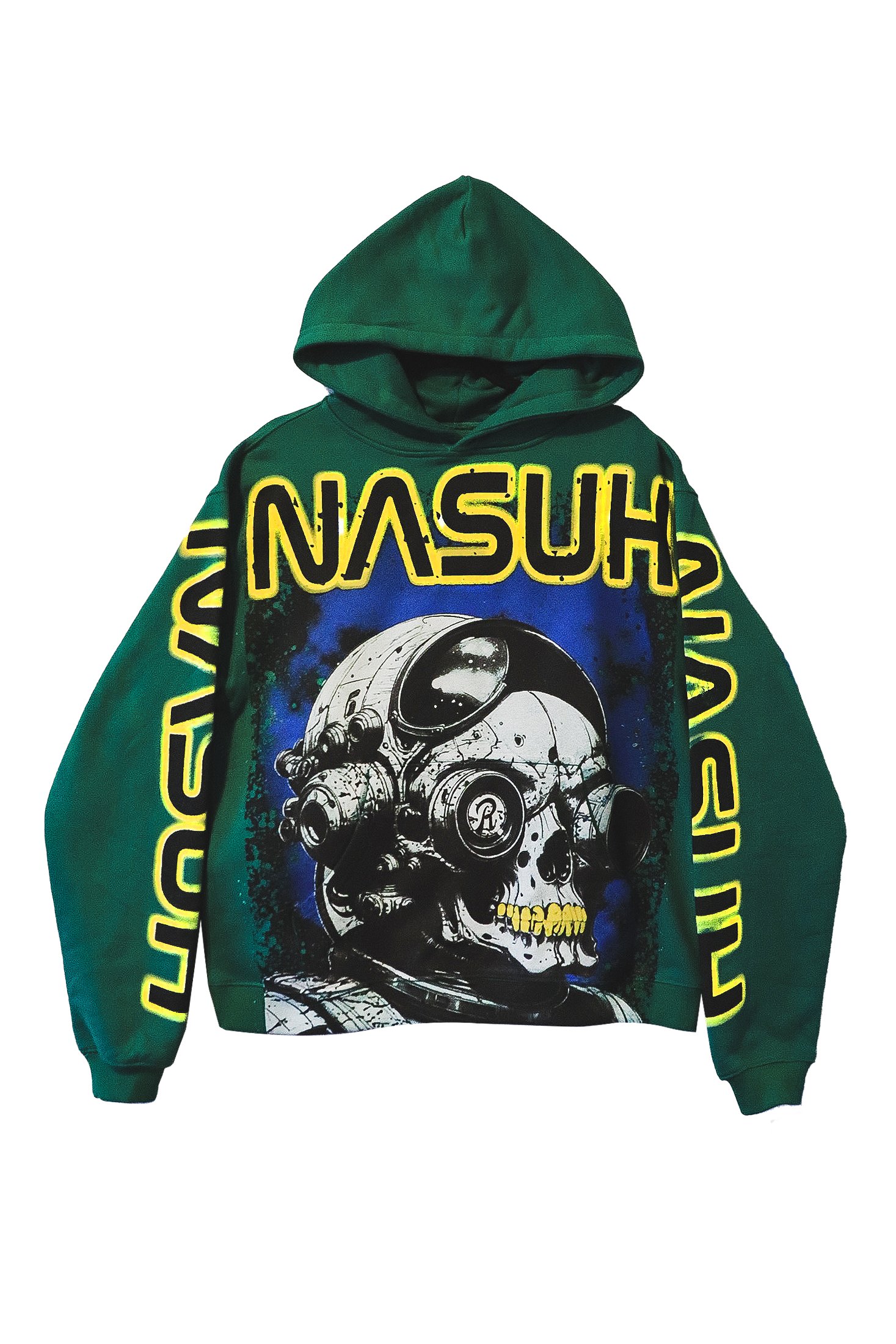 Featuring a French cotton-terry hoodie, Front design spotlights the Astro-Skull and a huge screen-printed graphic on the back and sleeves.